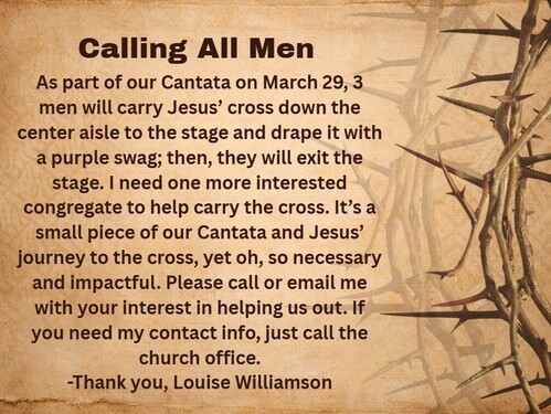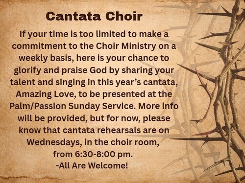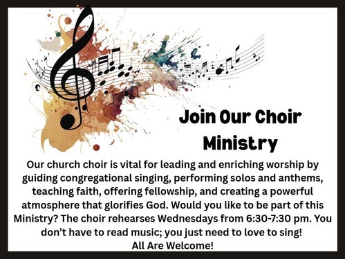 Rehearsals Wednesday at 6:30 pm in the Choir Room